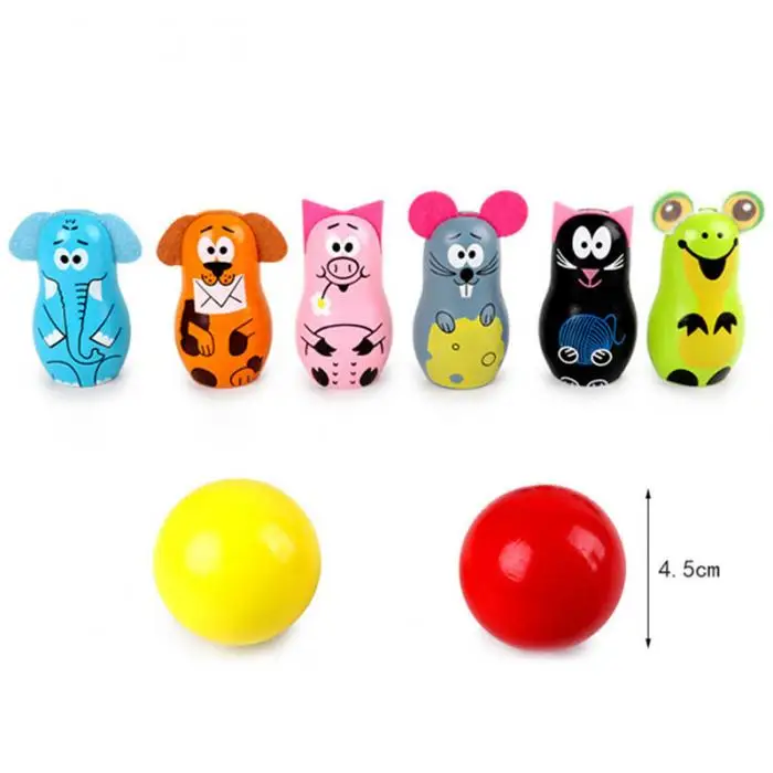 Wooden Animal Bowling Set Cartoon Early Educational Parent-child Toys M09