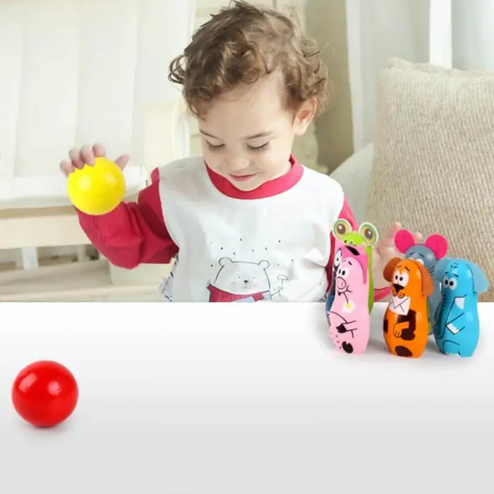 3. Interesting sports you can play anywhere: This animal-themed wood bowling set is great for playing outdoor games or indoor games.