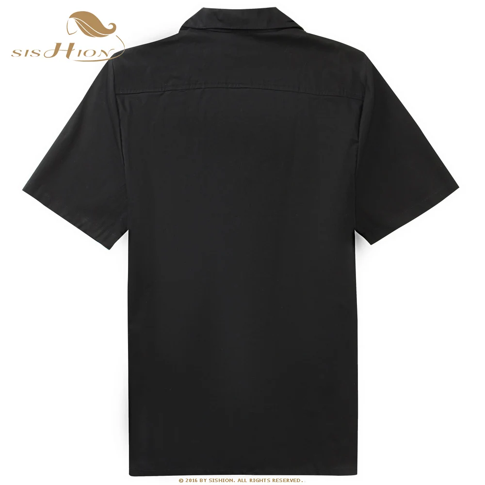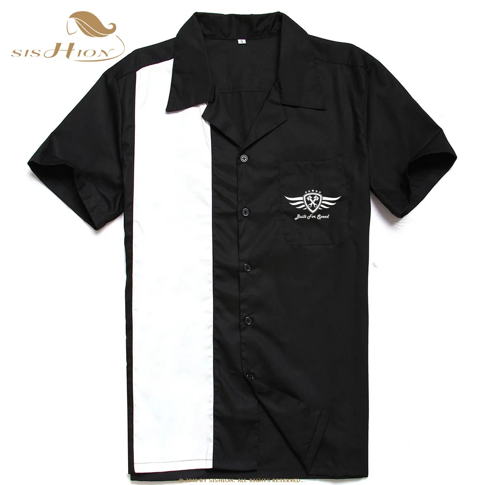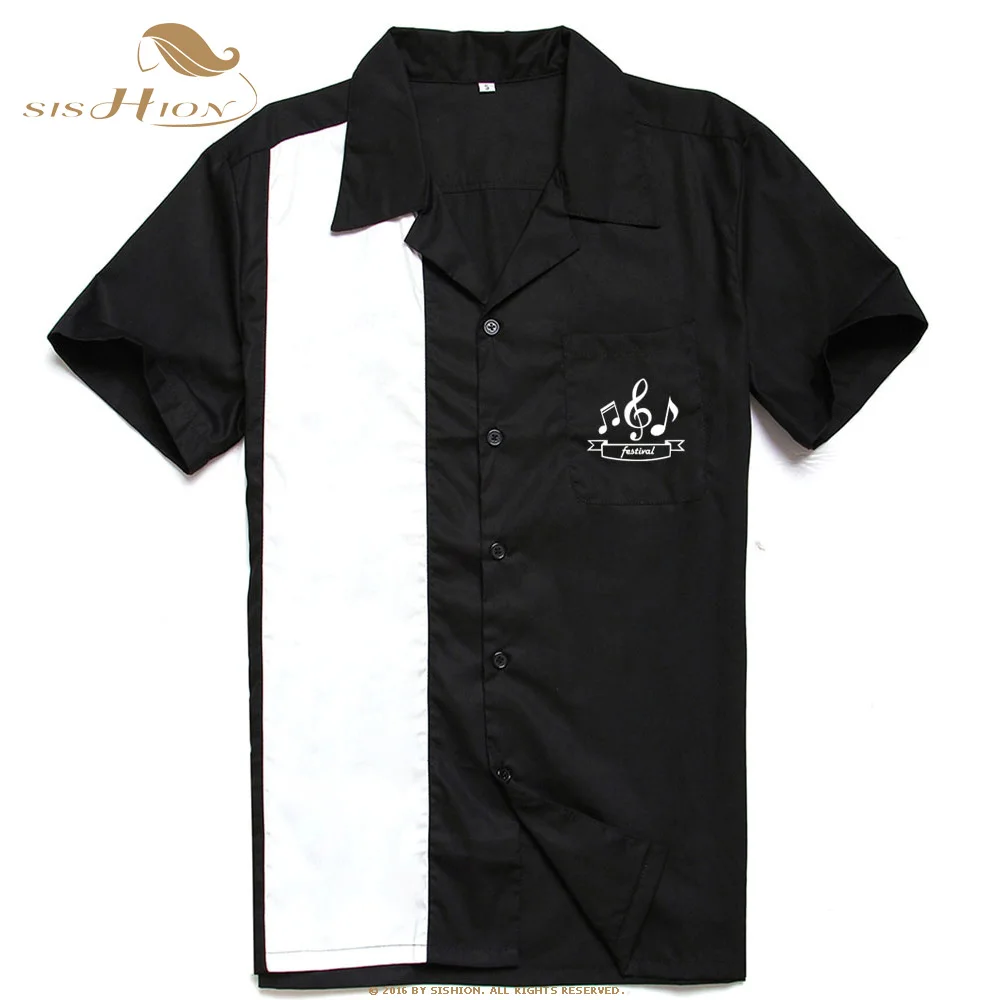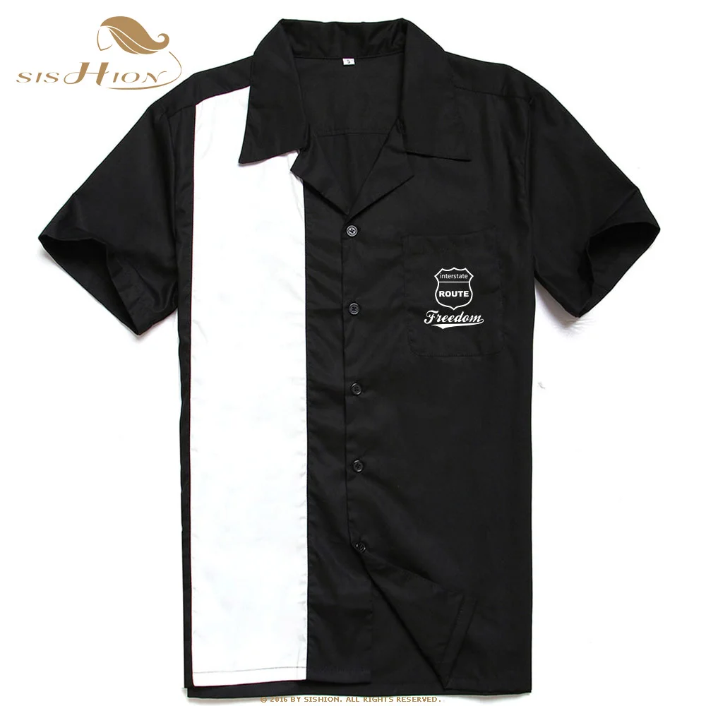 Cheap SISHION Rock Vintage Men Shirt ST126 Short Sleeve Black Pocket Cotton L-3XL Plus Size Retro Bowling camiseta hombre shirt men