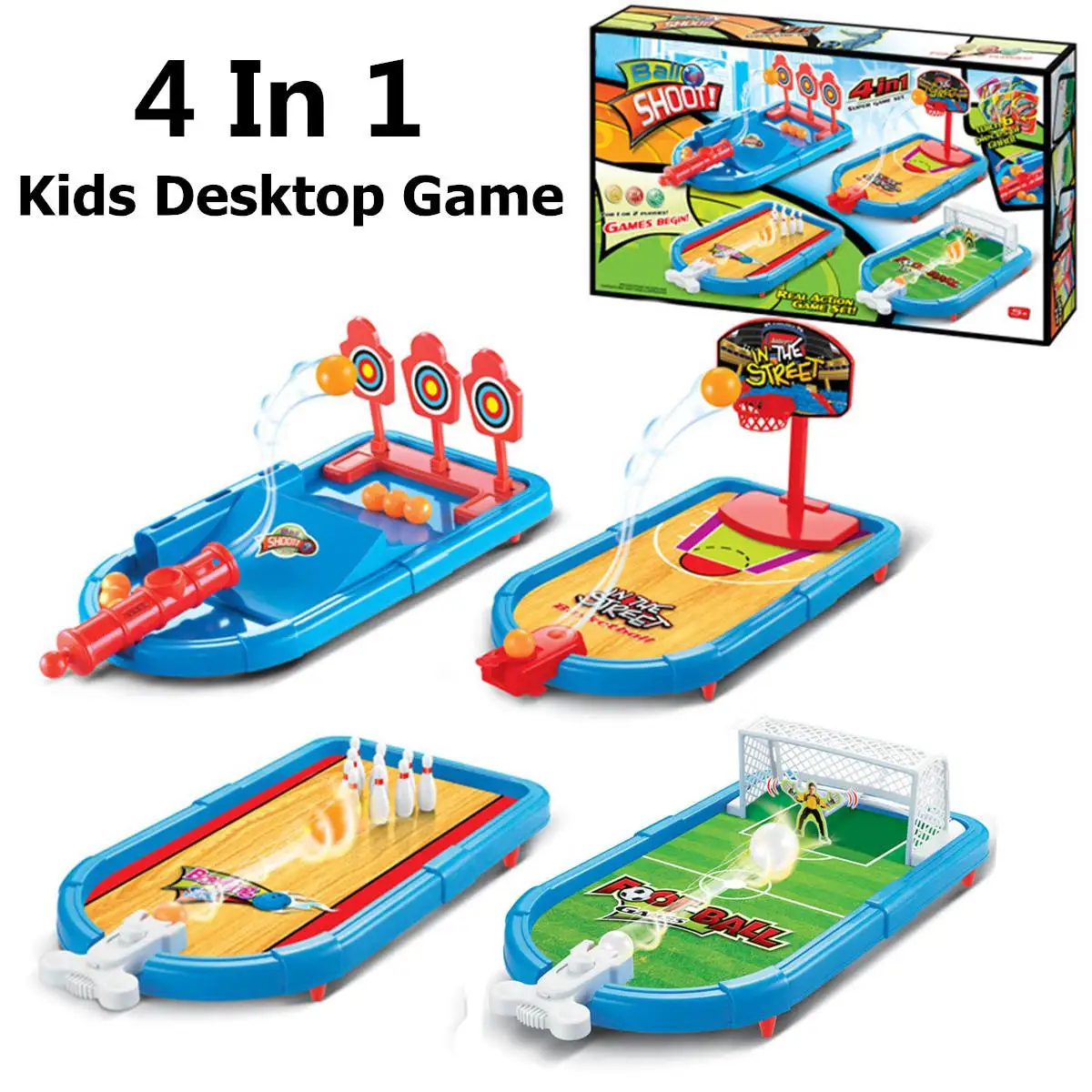 Best Offers ABS 4 In 1 Kids Desktop Bowling Shooting Basketball Football Game Toy Set High Quality Supporting More Kids Racing Interactive