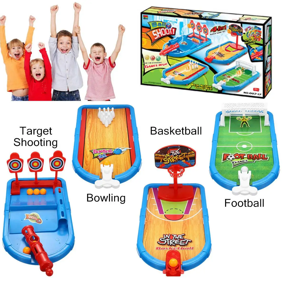 Special Offers 4 In 1 Kids Basketball Football Desktop Bowling Shooting Game Toy Set High Quality ABS Supporting More Kids Racing Interactive