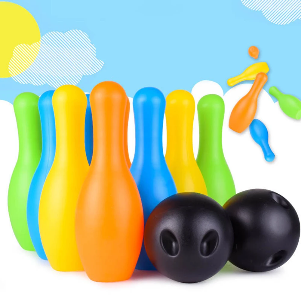 Special Price 12Pcs/Set Kids Colorful Bowling Pins Balls Kit Indoor Sports Interactive Toy Outdoor Plaything Beach Grassland Family Bauble