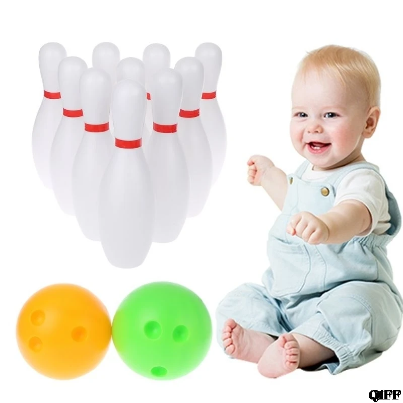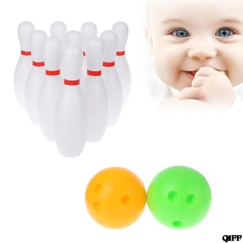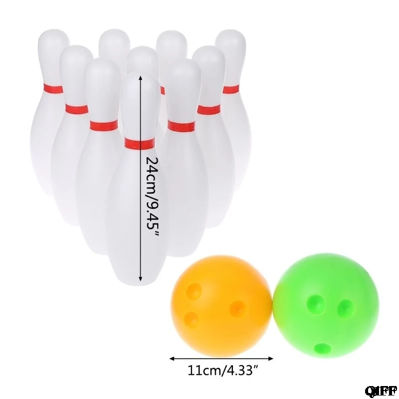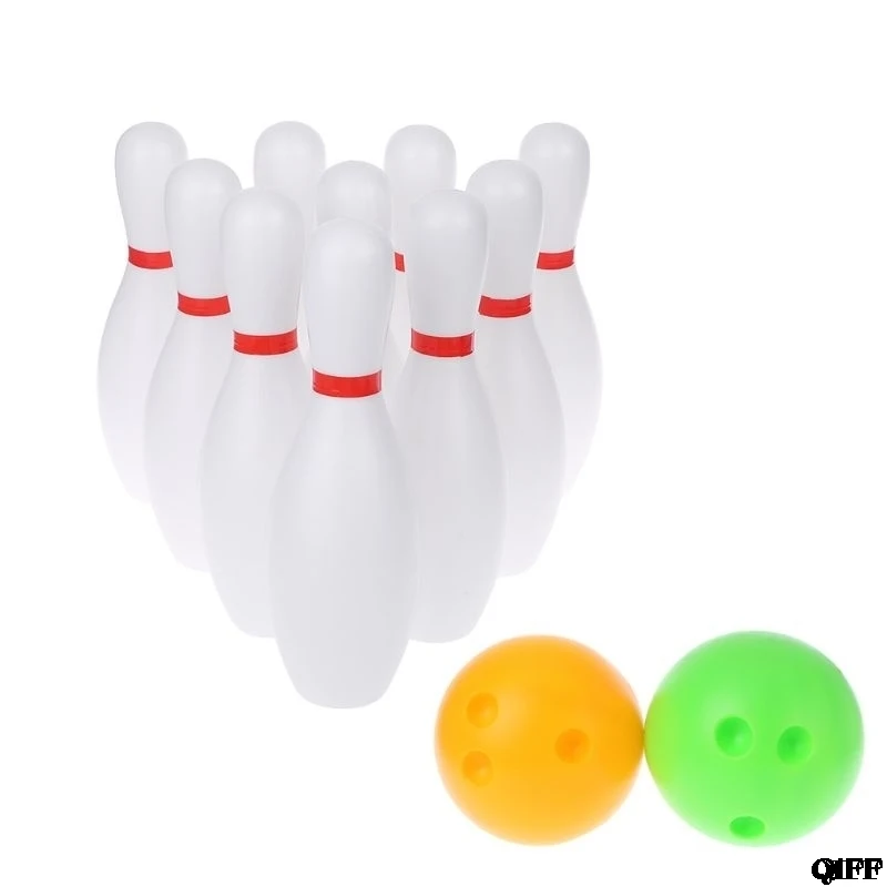To play simply set up the bowling pins in a triangle, bowl the ball towards it and try to knock over as many as possible!