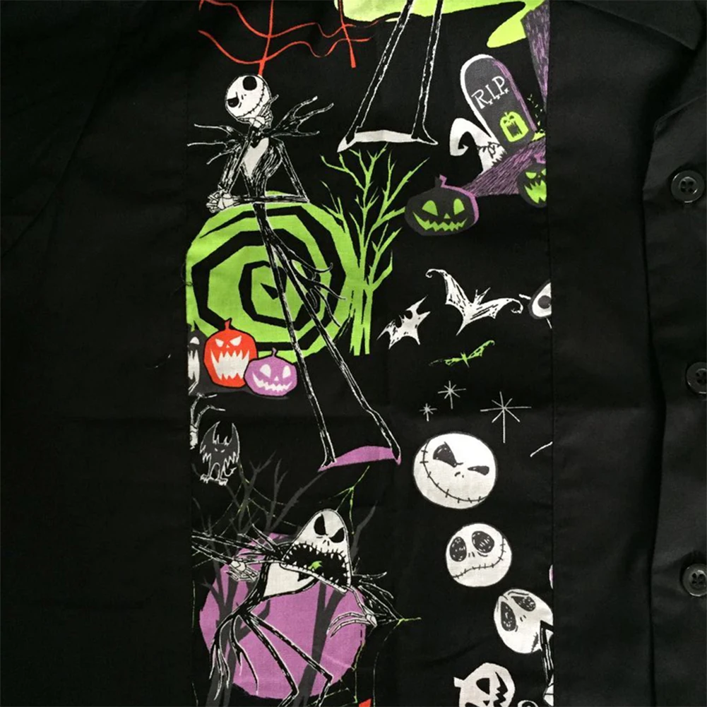 Halloween Rockabilly Men Bowling Shirt Buttons Front Pumpkin Ghost Tattoo Western Cowboy Psychobilly Rock N Roll Clothing