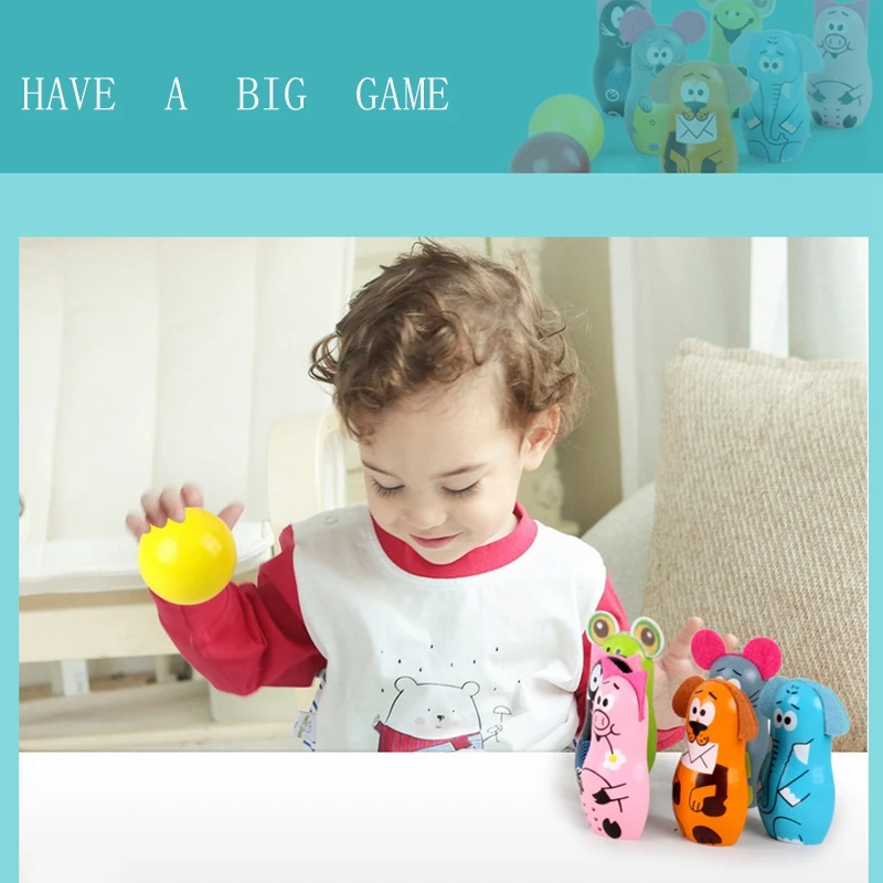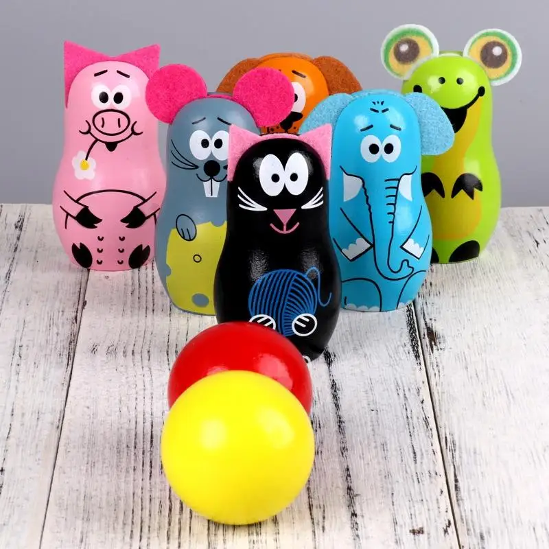 Wooden Cartoon Animal Bowling Children Early Education Educational Toys