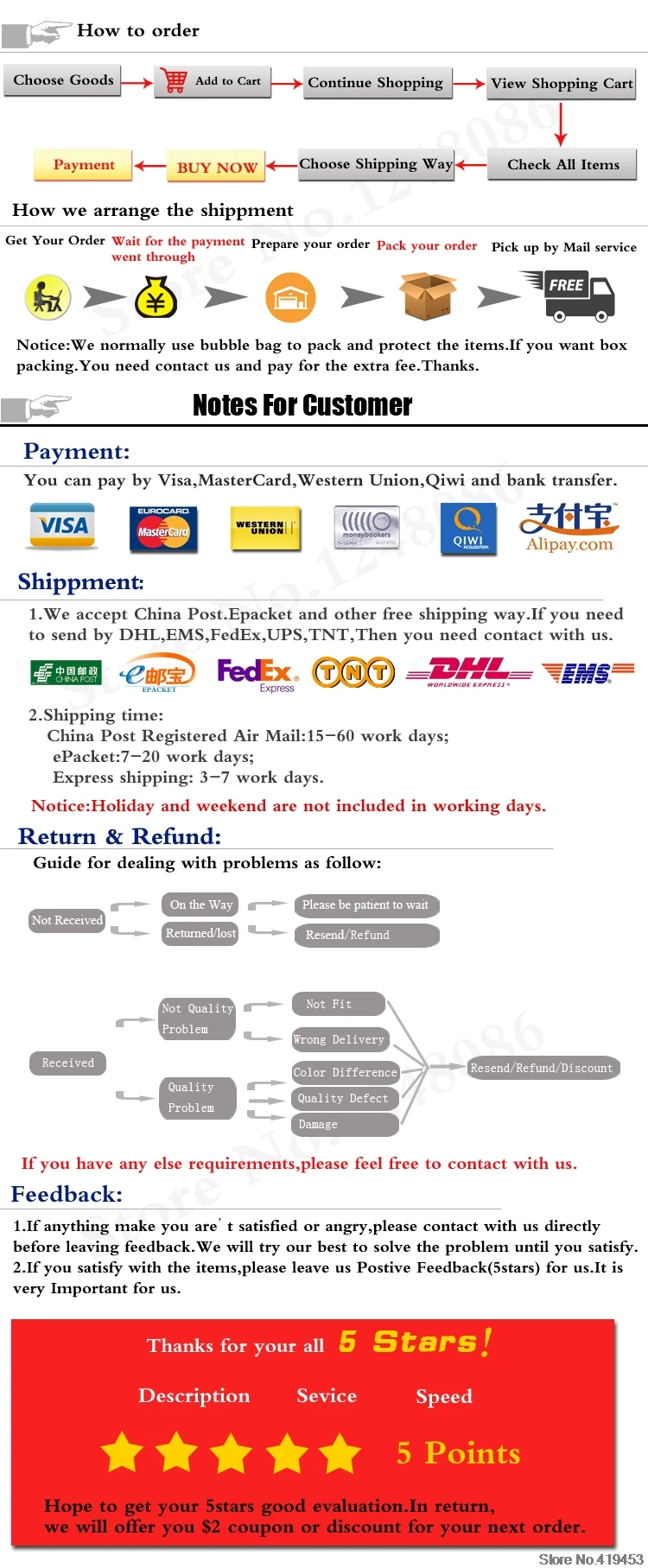 For drop shipping,you can submit order with your customer's address,we can send parcel without any information about our store.