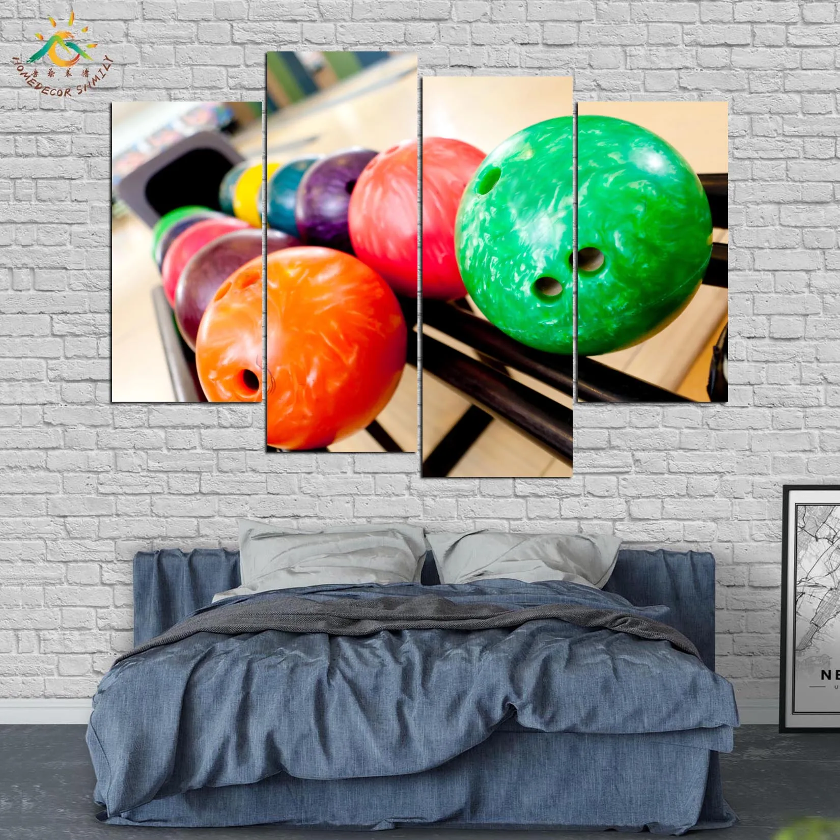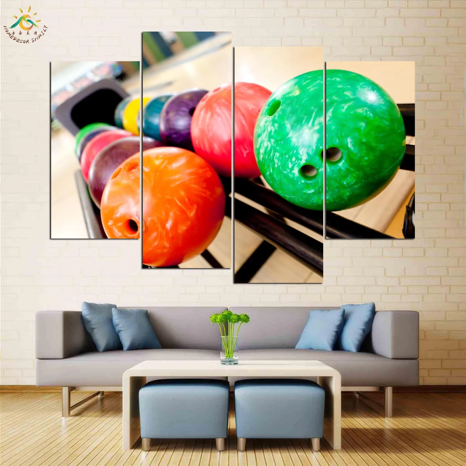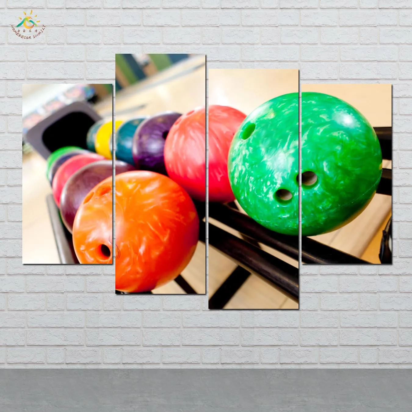 Best Offers Bowling Balls Rack Wall Art Canvas Painting Posters and Prints Decorative Picture Decoration Home For Living Room 4 PIECES
