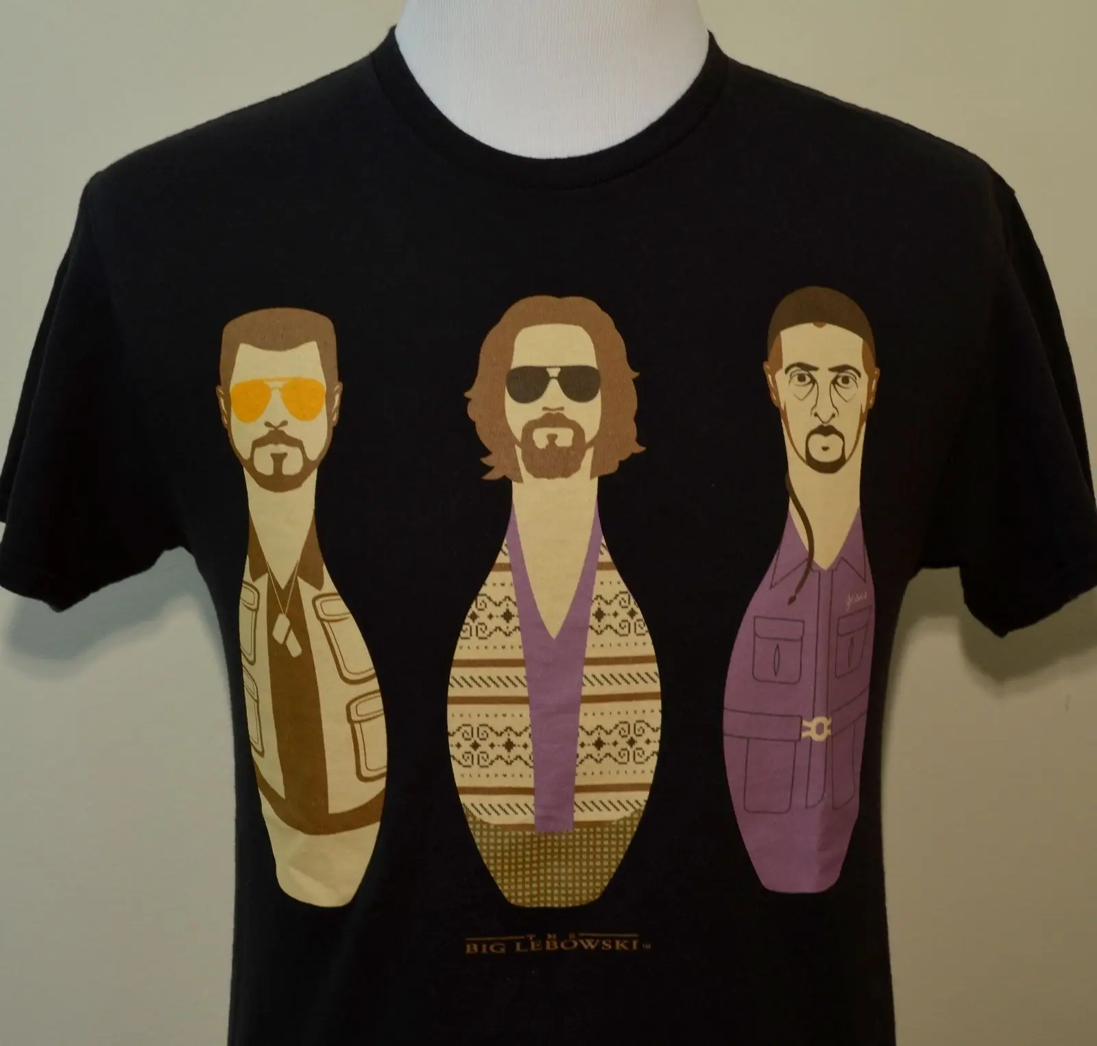 Cheap The Big Lebowski t-shirt black medium The Dude bowlinger pins Jeff Bridges