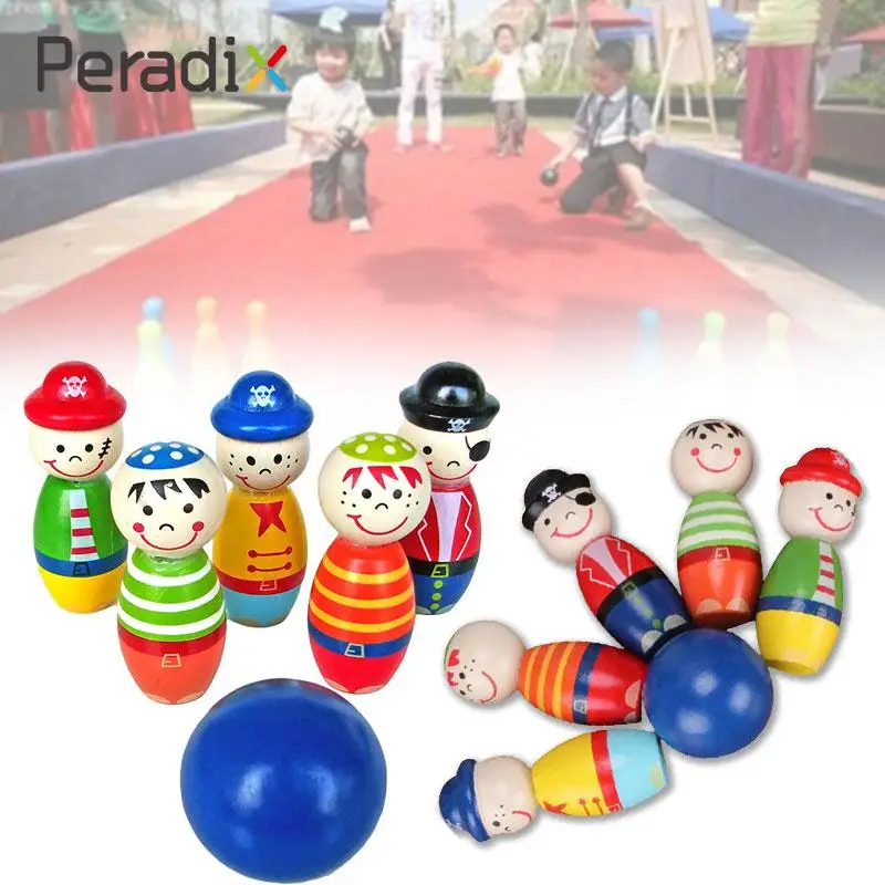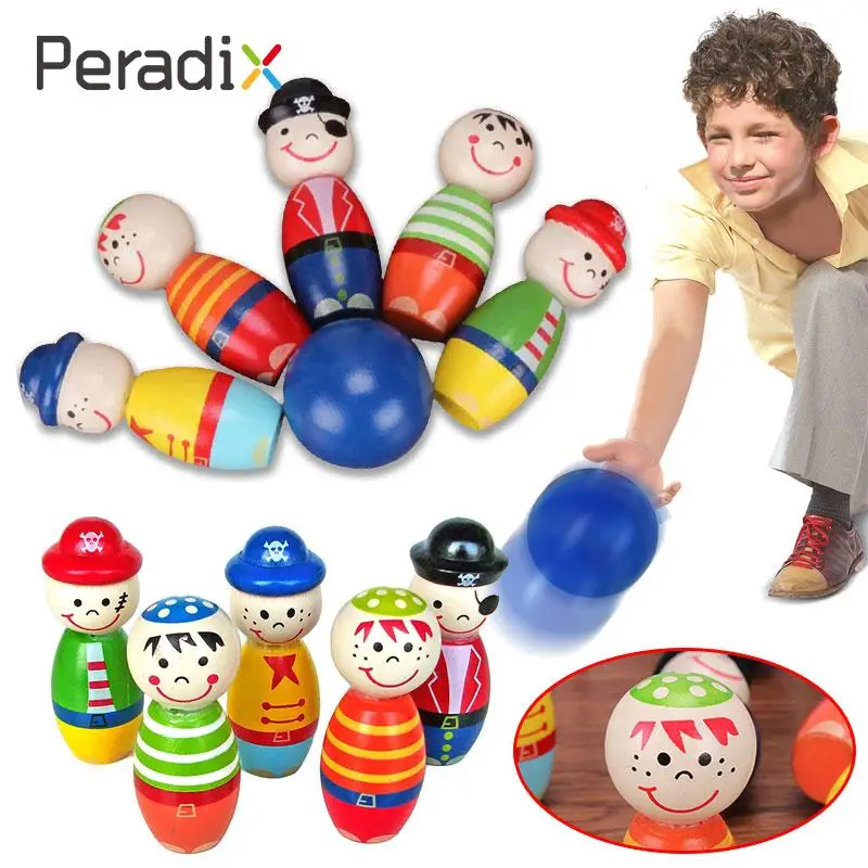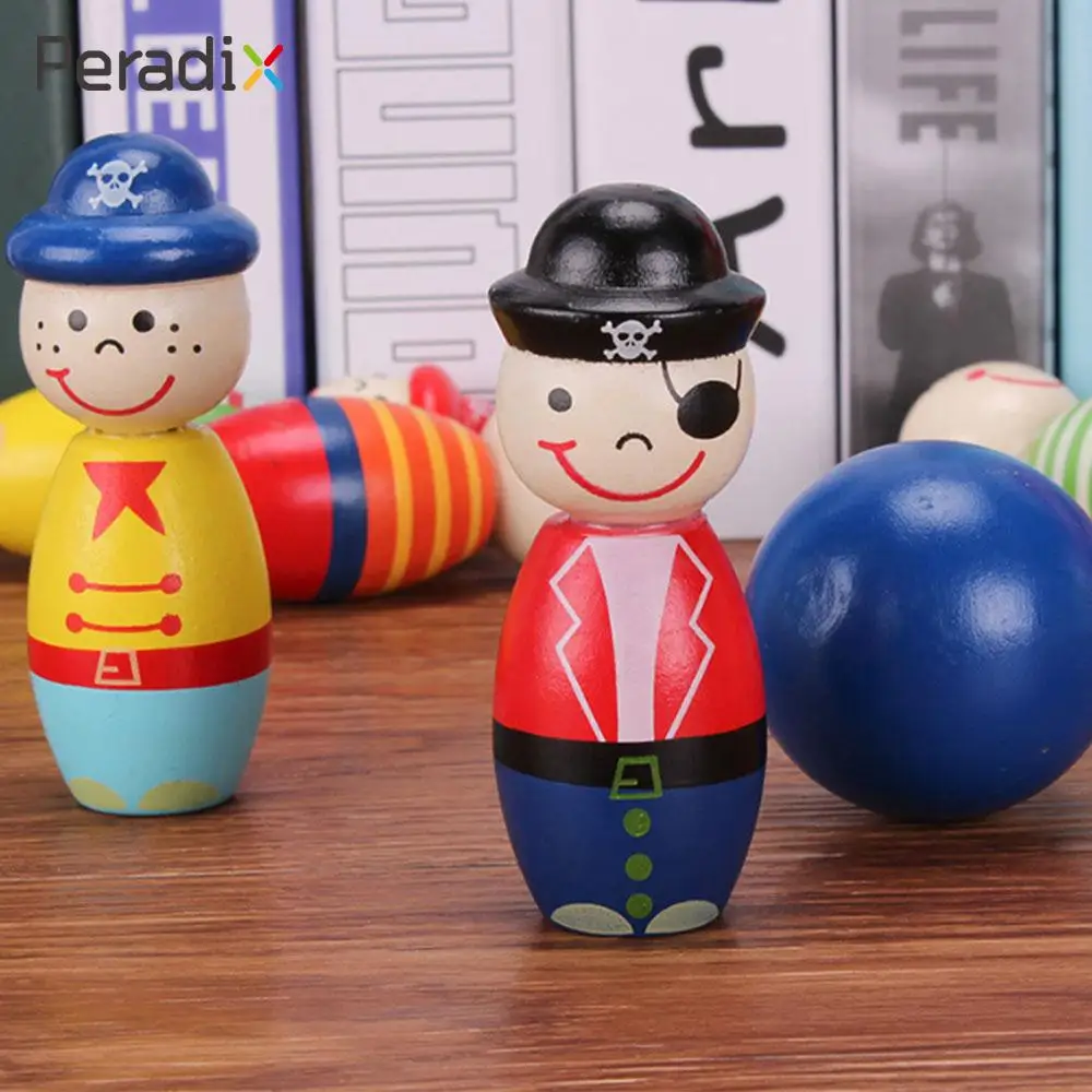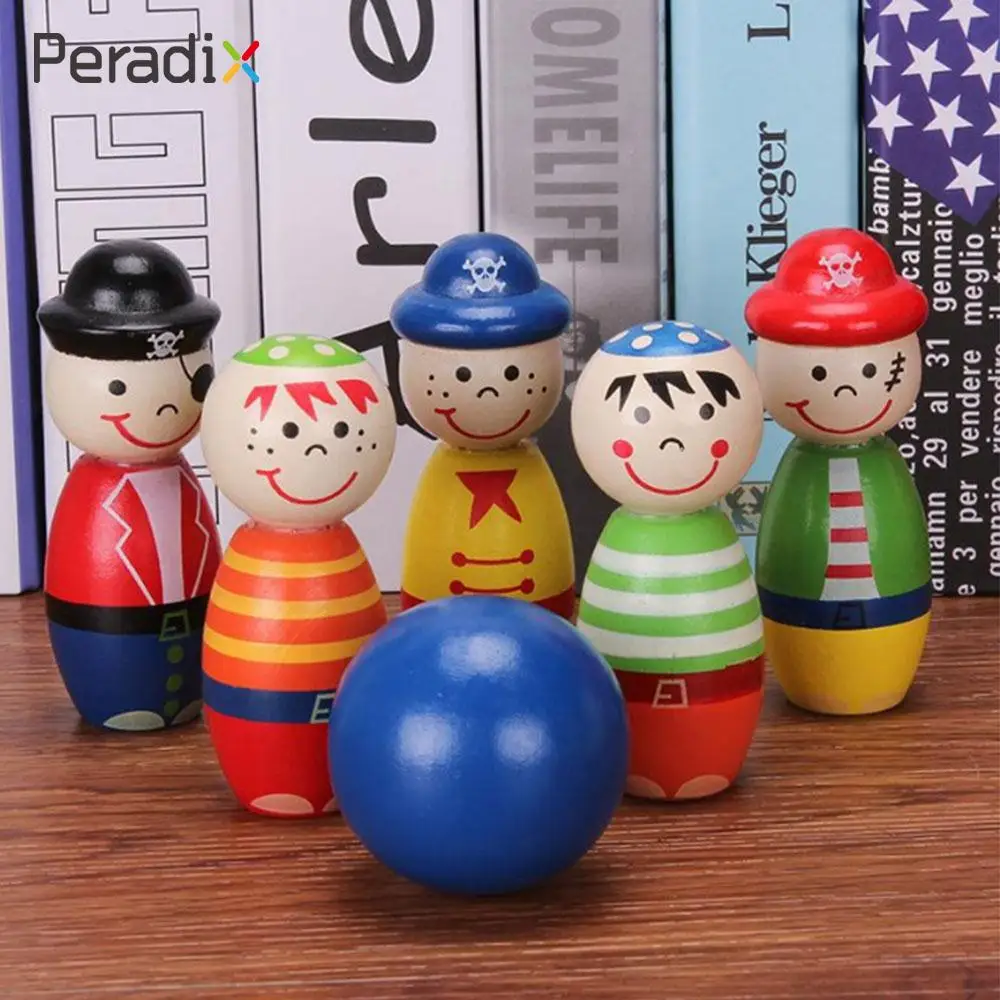 Cheap 6Pcs Wooden Indoor Outdoor Set Bowling Pirate Ball Cartoon Handcrafted Play