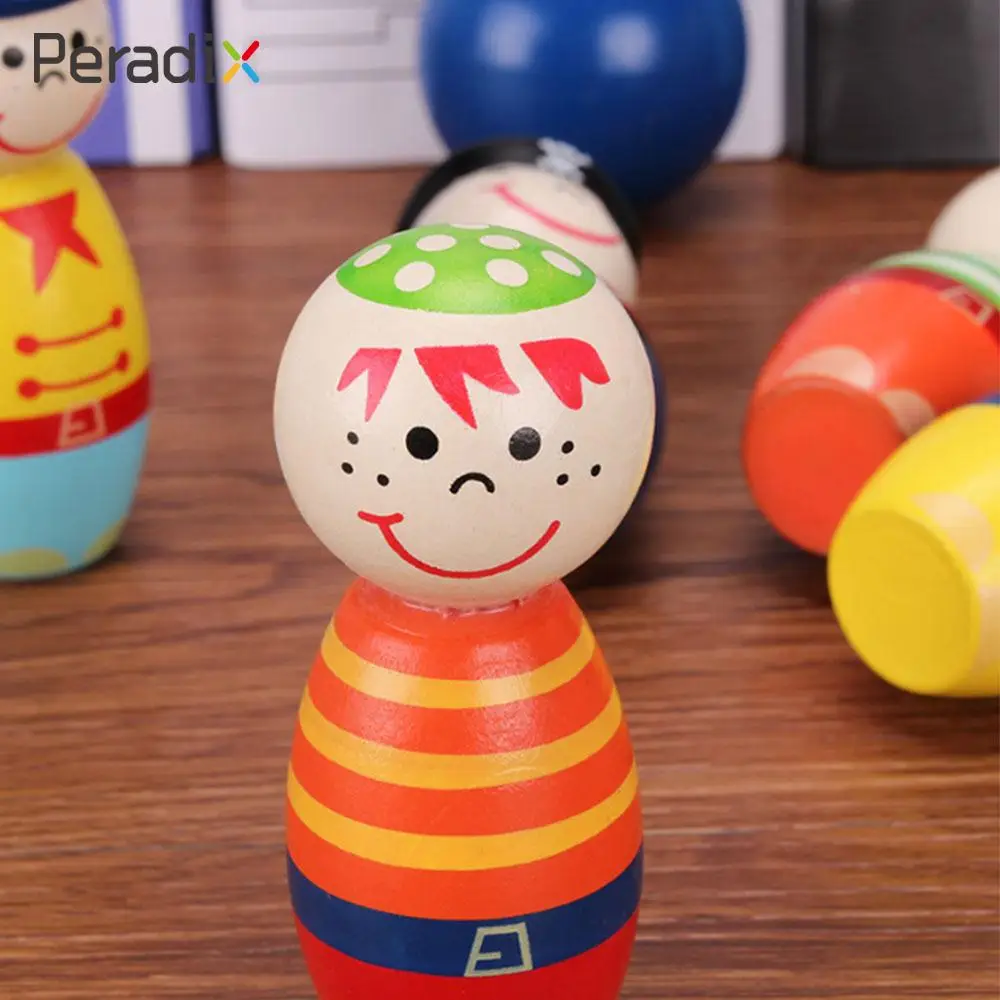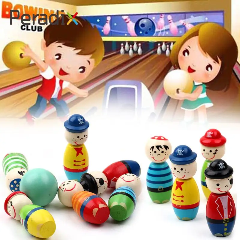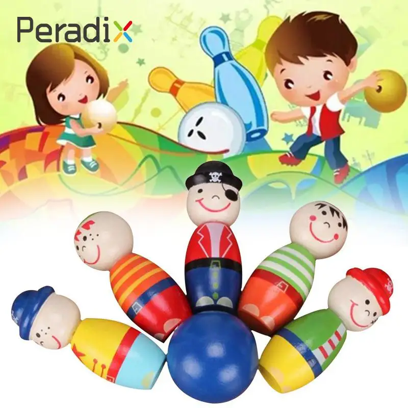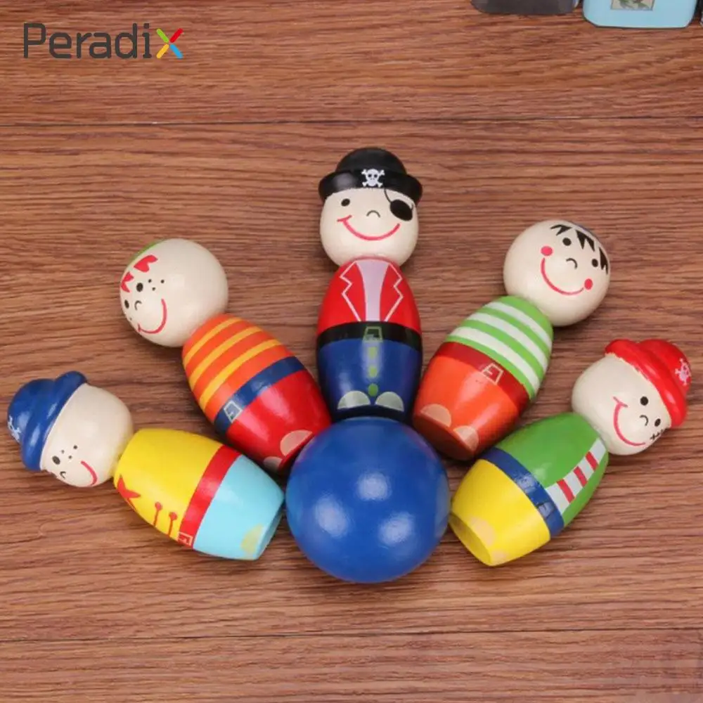 Cheap 6Pcs Wooden Indoor Outdoor Set Bowling Pirate Ball Cartoon Handcrafted Play
