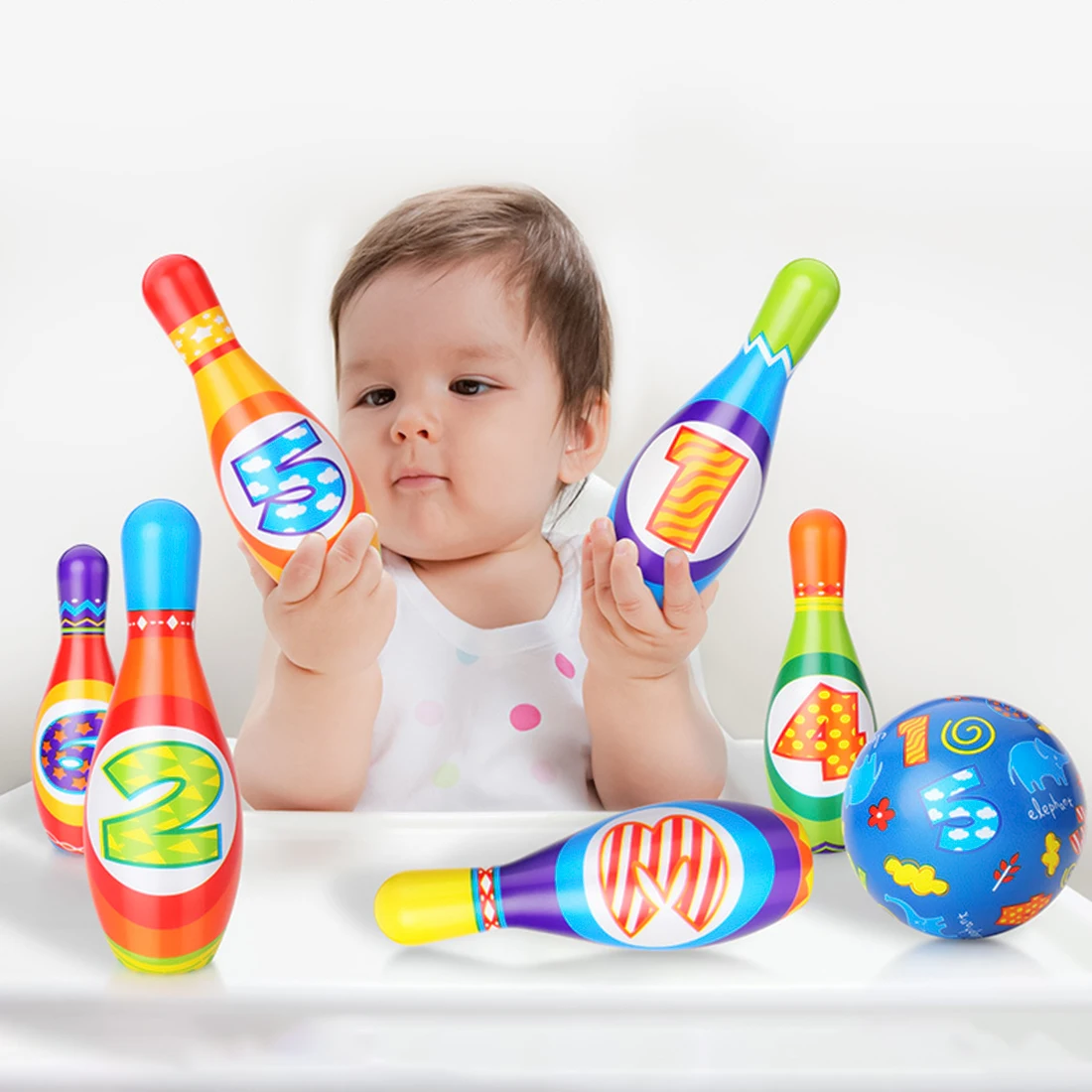 19cm Children PU Bowling Toy Sports Ball Toys with 6 Pins Educational Toys for Children Gift