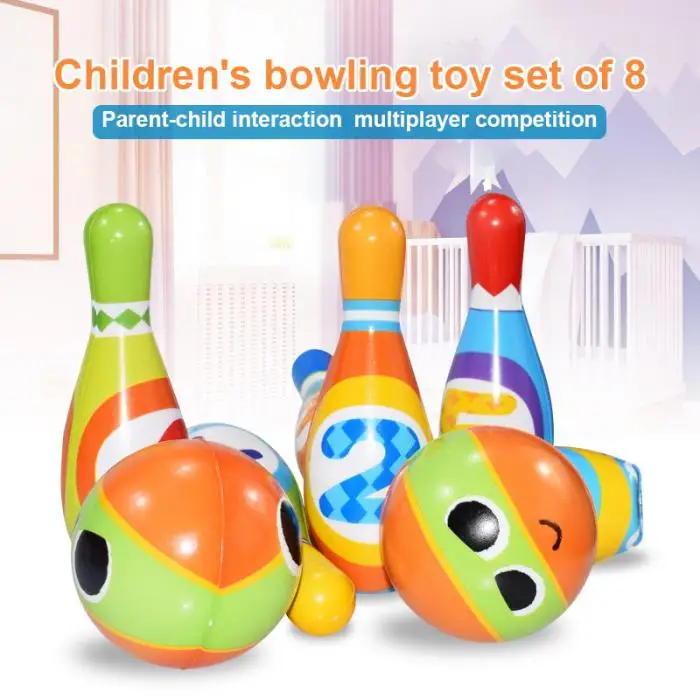 8 Pcs/Set Kids Bowling Play Set PU Leather Ball Early Educational Toy Gifts BM88