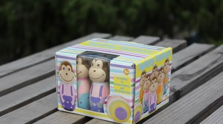 Best Price Children cartoon wooden bowling ball game toys/ Kids Child classic bowling toys include 6 monkeys and 1 ball, color box packing