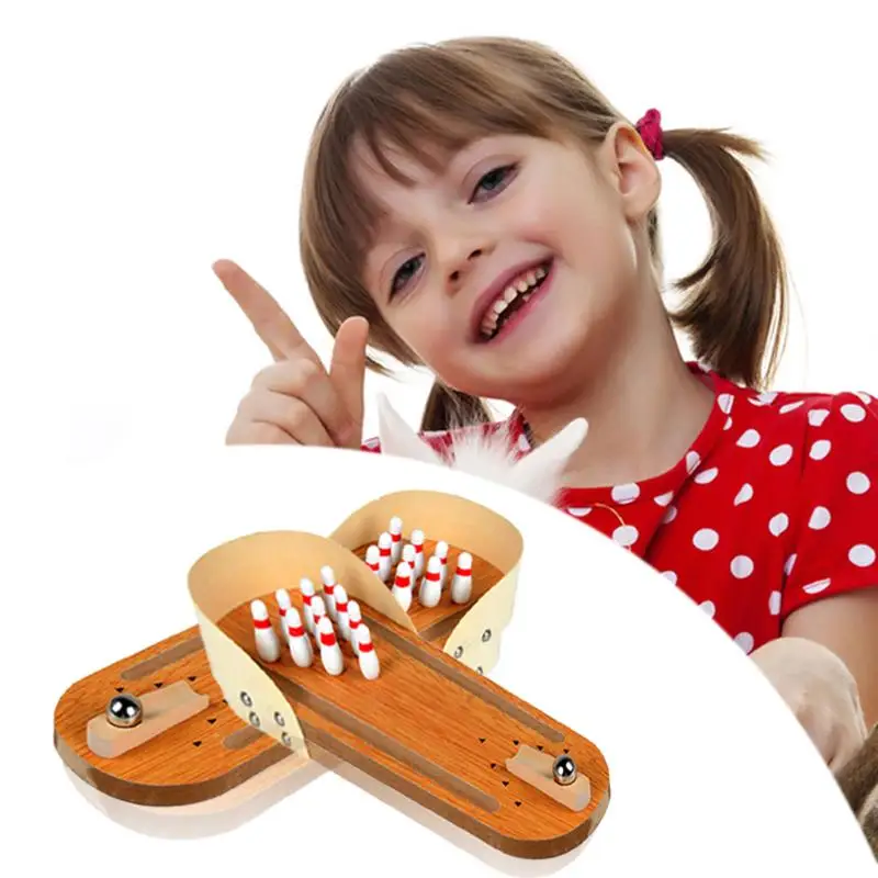 AIkong Wooden Bowling Alley Ten Metal Pin Ball Desk Mini Desktop Bowling Game Set Multi-Colored. $13.66 $ 13. 66. 2019 Mini Entertainment Desktop Bowling Game Set Wooden Alley Ten Metal Pin Ball Desk Children Kid - Decorations Party Party Decorations Child Souvenir Happen Happy. $18.85 $ 18. 85.