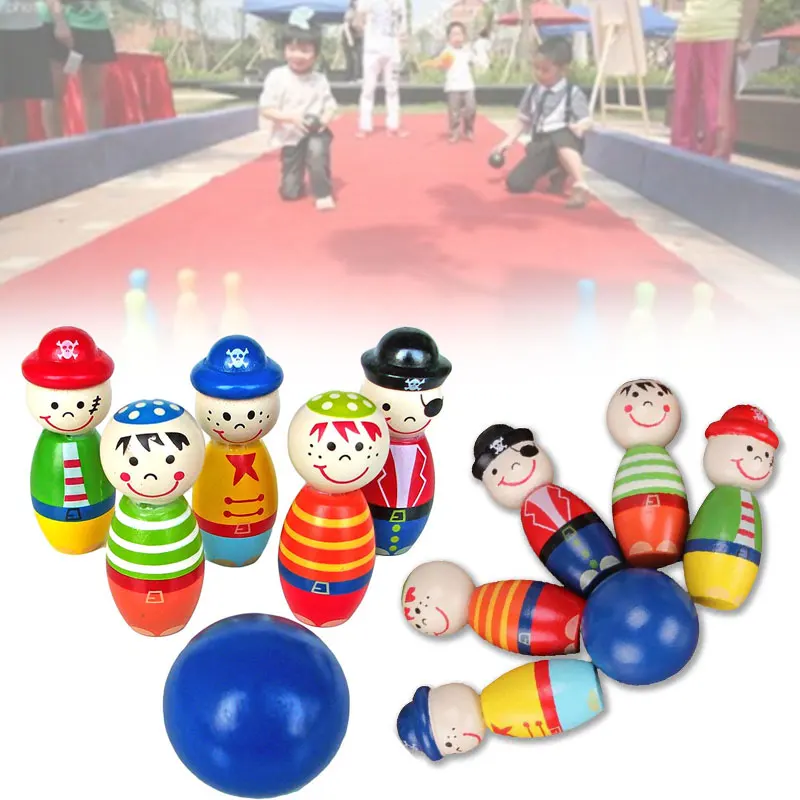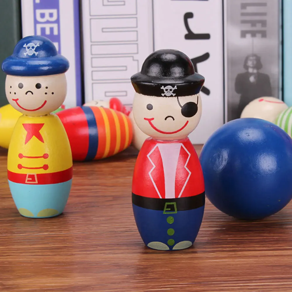 Best Offers 6Pcs/Set Wooden Indoor Outdoor Set Bowling Pirate Ball Handcrafted Play