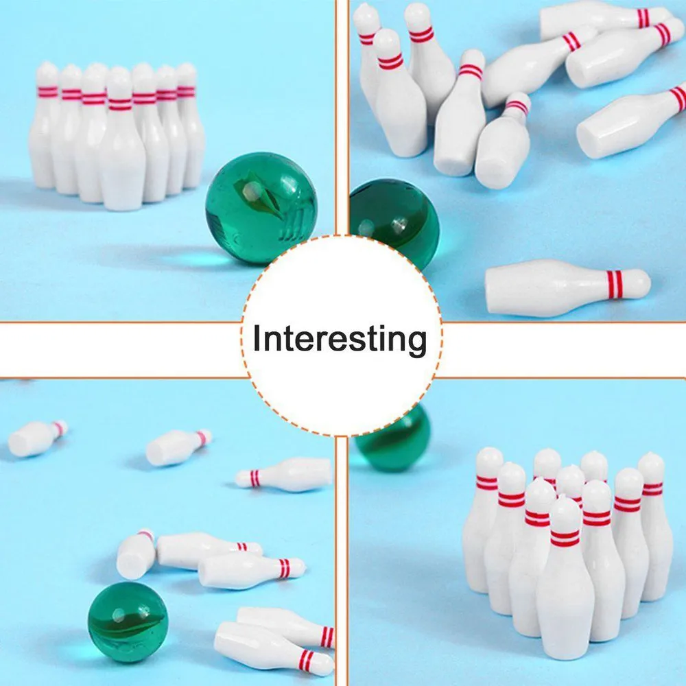 Strike out stress with a beautifully designed miniatures bowling playset that fits great on your desk or any other table, so you can go bowling any time.