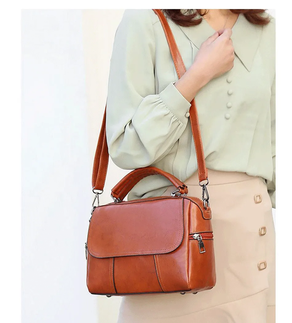 Pahajim Handbag leather small women satchel shoulder bag vintage crossbody messenger bag for evening and party Ladies Small Top Zip Oil Tan Leather Crossbody Handbag Bag Womens Handbags and Purse PU Leather Ladies Designer Satchel Tote Top Handle Shoulder Bags Multiple Pockets Medium Size Hobo Handbag Cross Body Bag with Long Strap