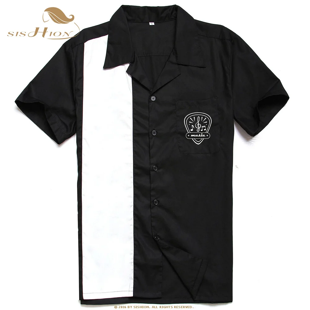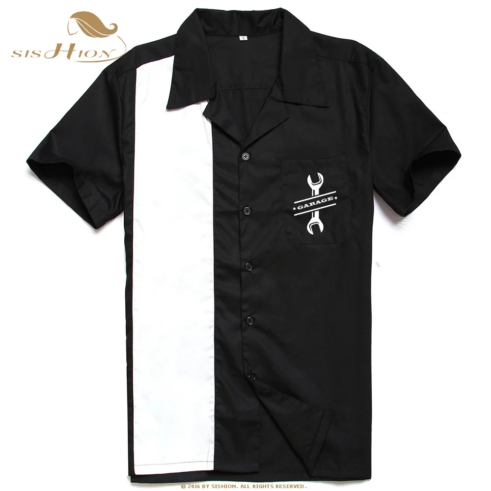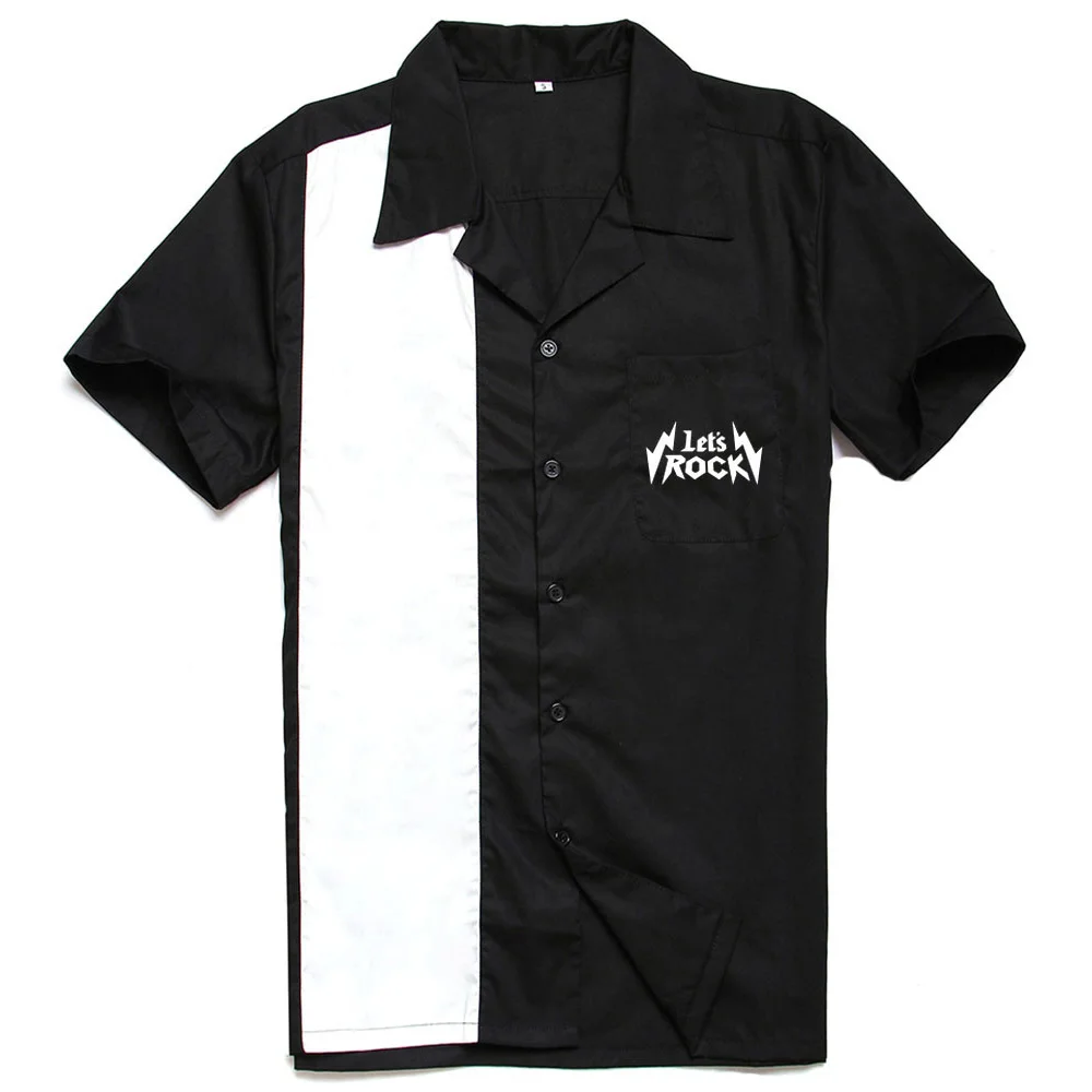 Short Sleeve Black Pocket Cotton L-3XL Plus Size Retro Bowling camiseta hombre shirt men