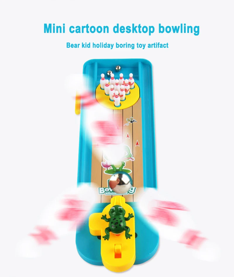33x10.5cm Mini Cartoon Plastic Table Frog Bowling Desktop Game with Steel ball Funny Indoor Parent-child Interactive Toys Set