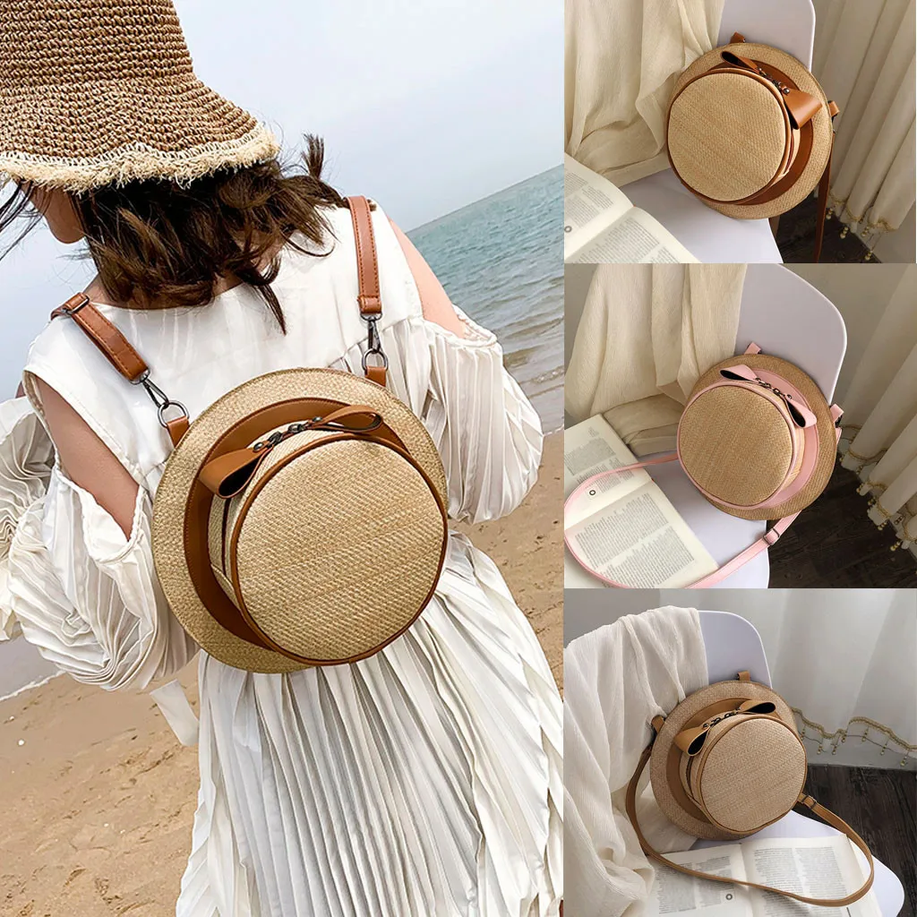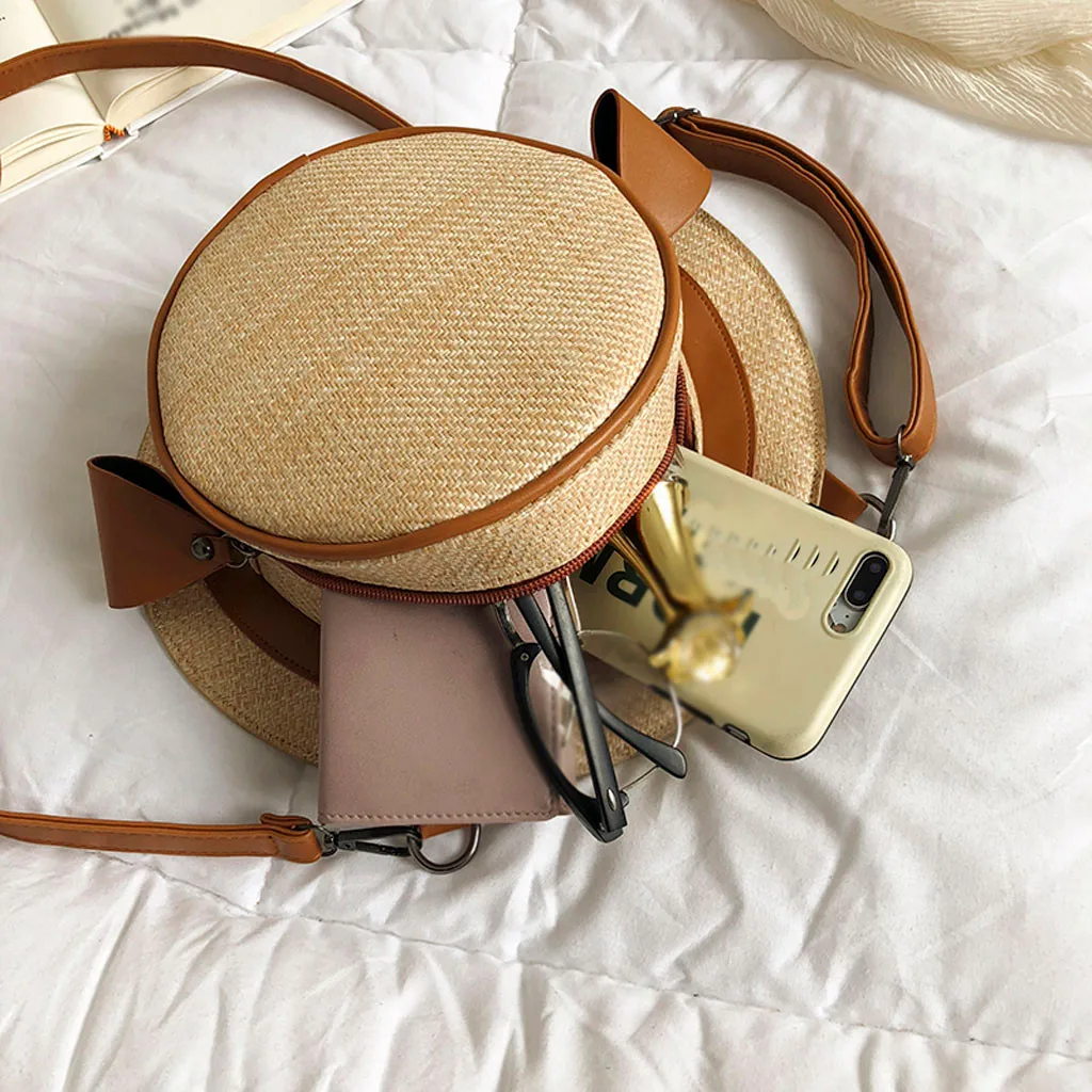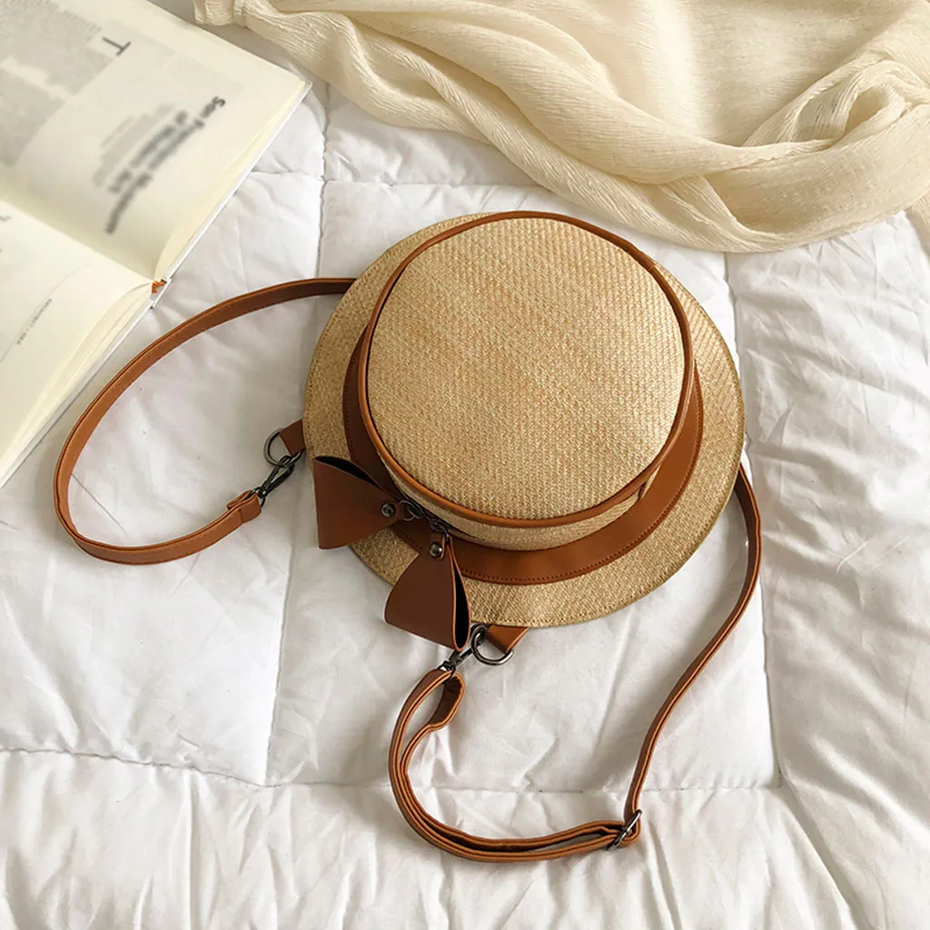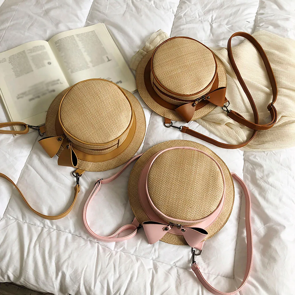 Fashion Ladies Hat Braided Bow Beach Shoulder Bag Messenger Bag Backpack