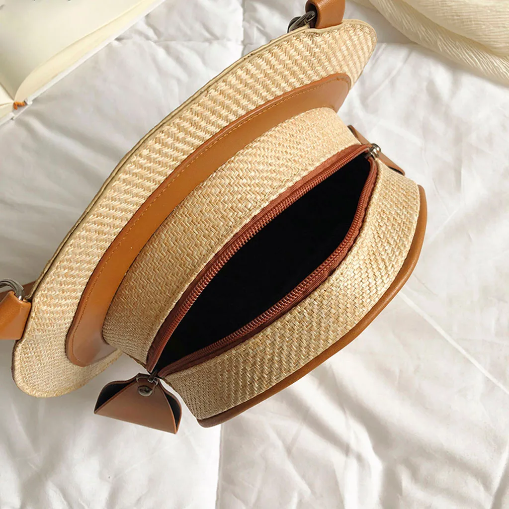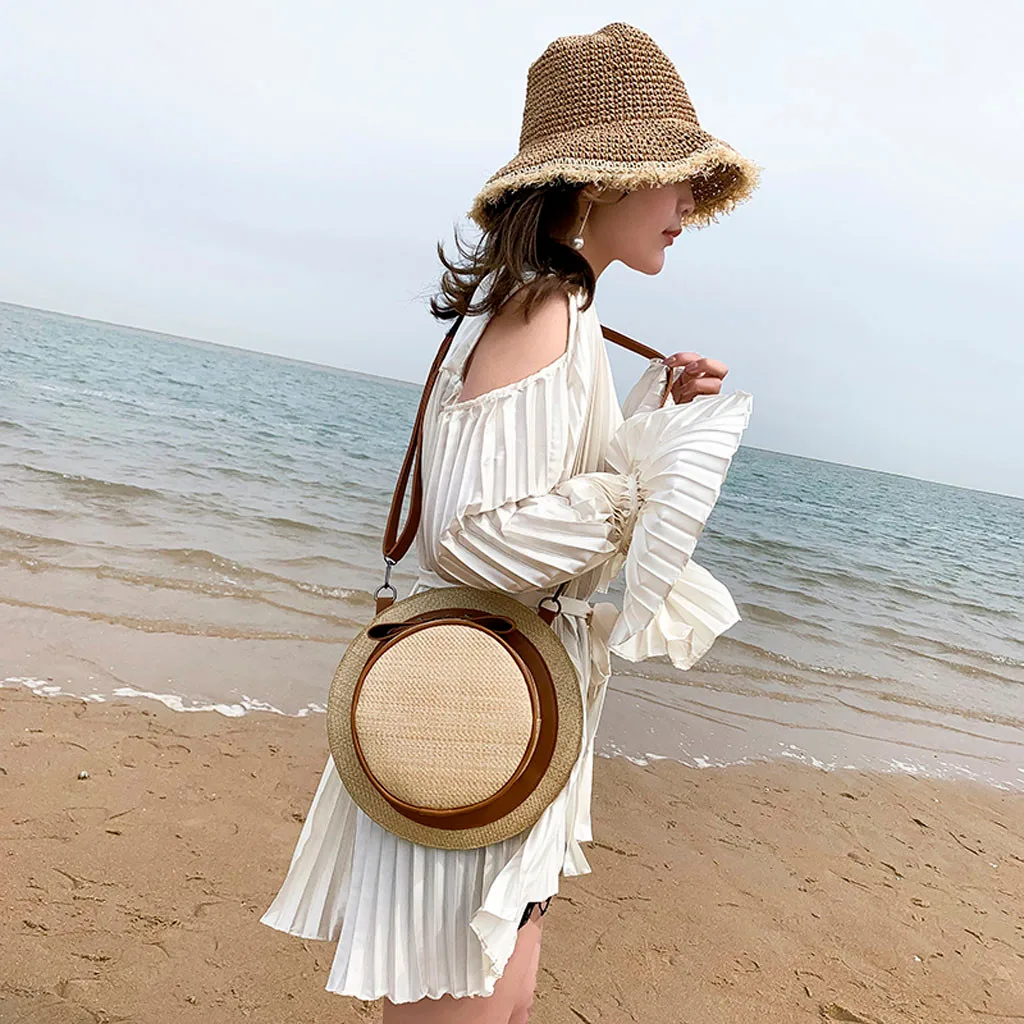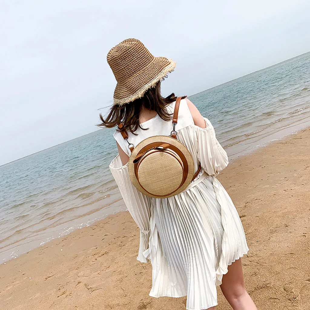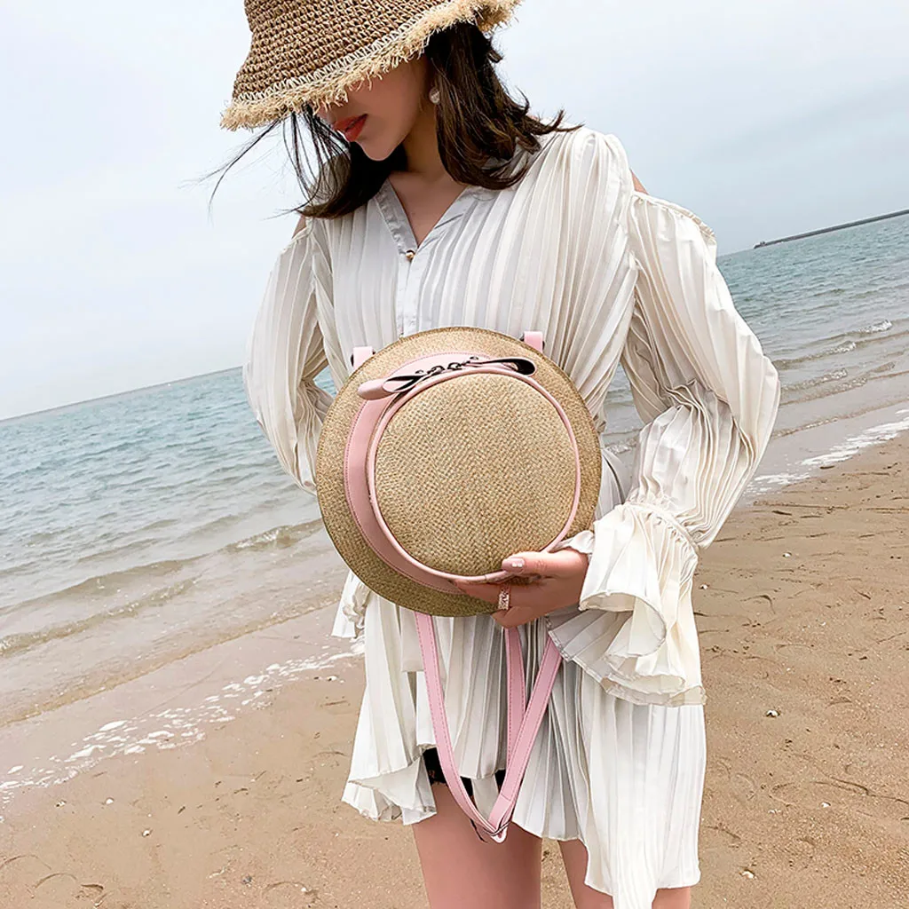 Fashion Ladies Hat Braided Bow Beach Shoulder Bag Messenger Bag Backpack